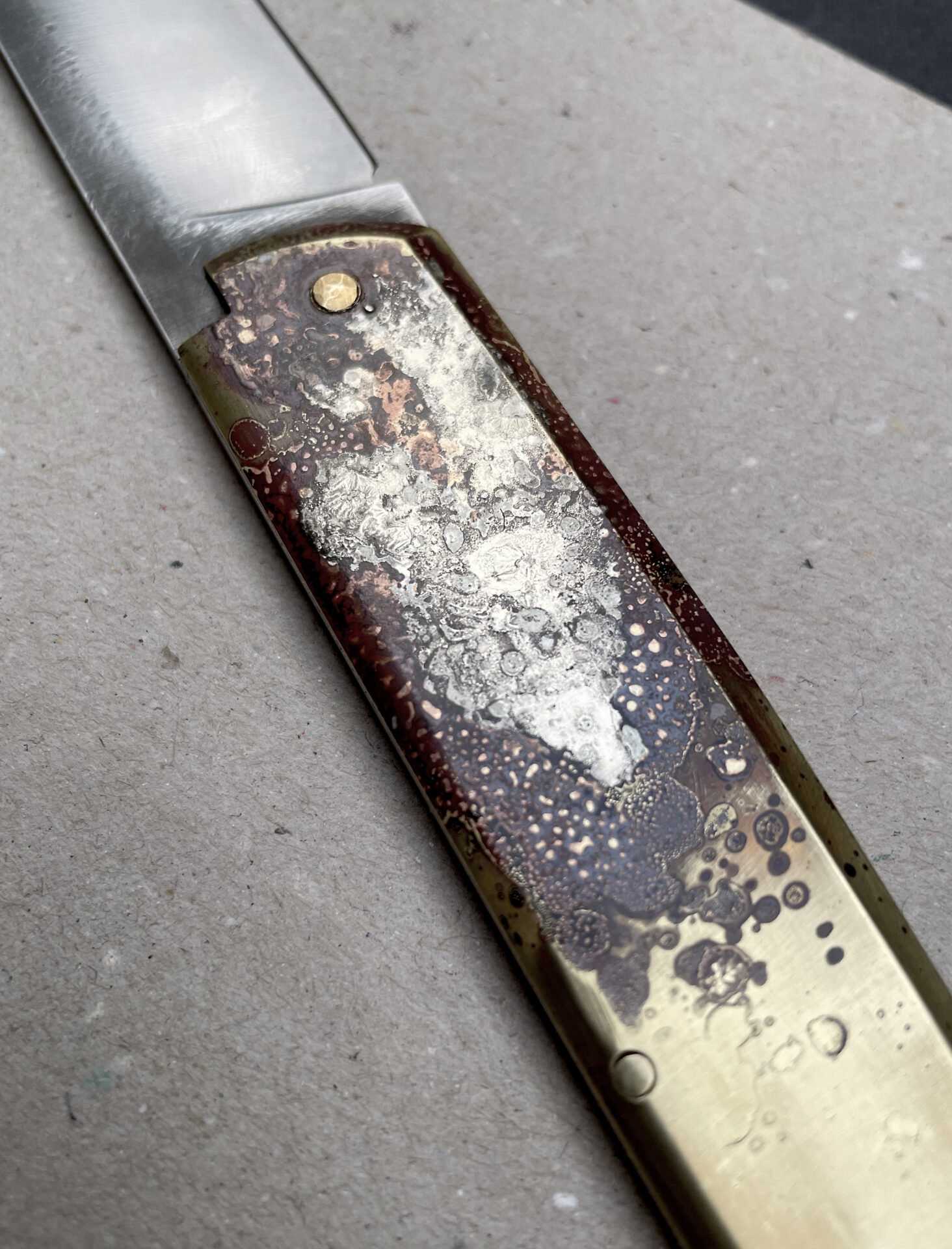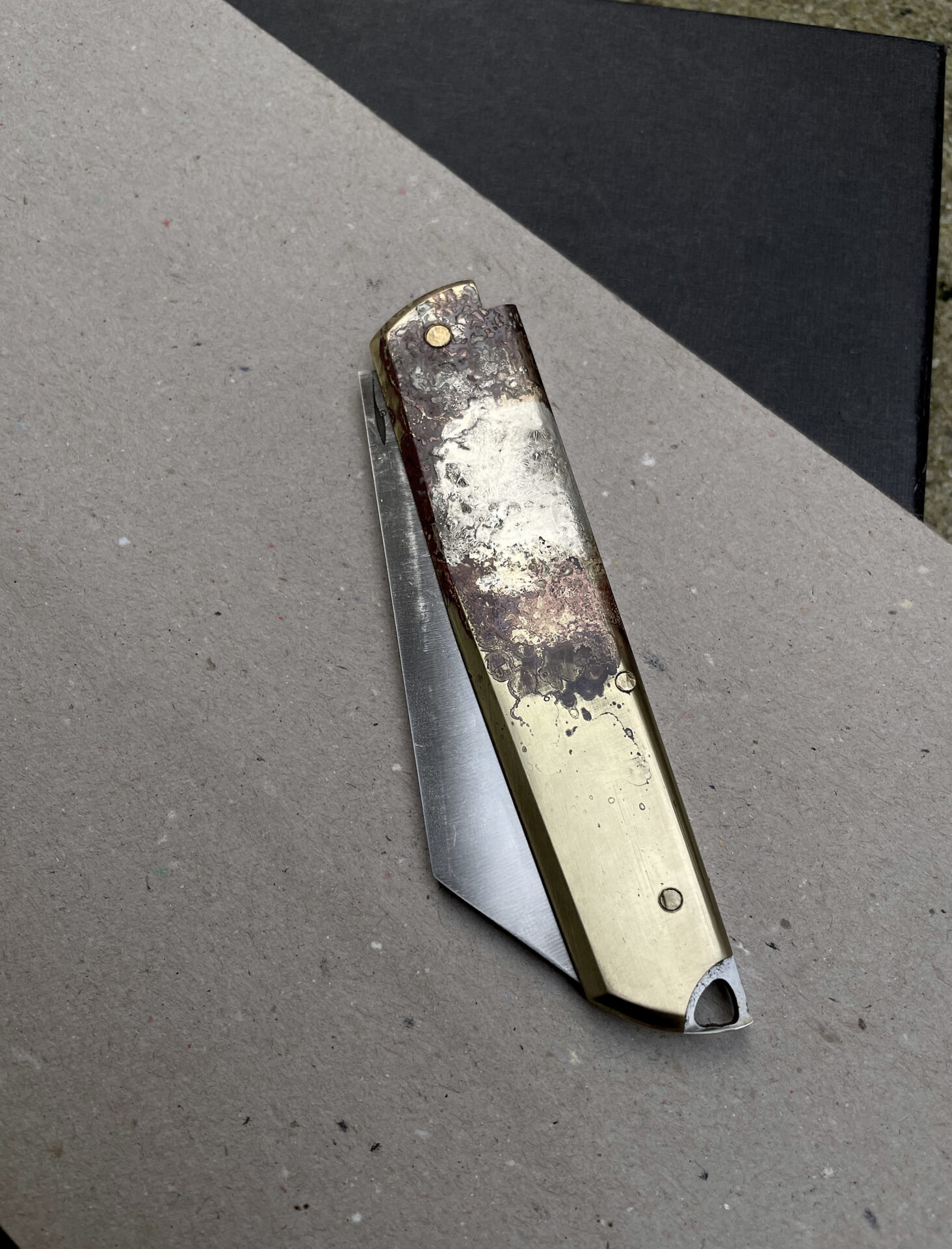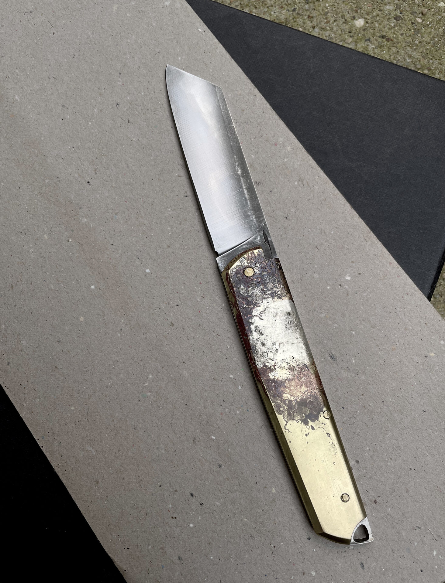 Couteau pliant cran forcé / Monté sur rondelles en bronze Béryllium